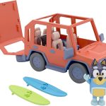 Il veicolo della famiglia Heeler così come si vede nel cartone animato della serie Bluey. La jeep è a ruota libera; il tetto si apre a ribalta in modo da poter posizionare personaggi ed accessori all’interno. Include 1 personaggio Bandit, 2 tavole da surf e 1 foglio di adesivi con cui decorare il veicolo. Il veicolo include sedili aggiuntivi su cui posizionare i restanti componenti della famiglia Heeler personaggi aggiuntivi venduti separatamente.