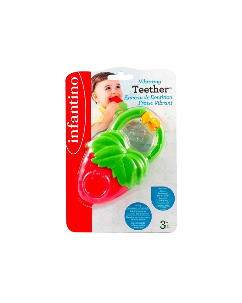 INFANTINO MASSAGGIATORE FRAGOLA VIBRANTE GIOCHERIA POS210007. Questo massaggiagengive morbido e strutturato massaggia delicatamente le gengive del bambino. La vibrazione rilassante si attiva quando il bambino mastica su questo morbido massaggiagengive gommoso. Età consigliata 3 mesi+