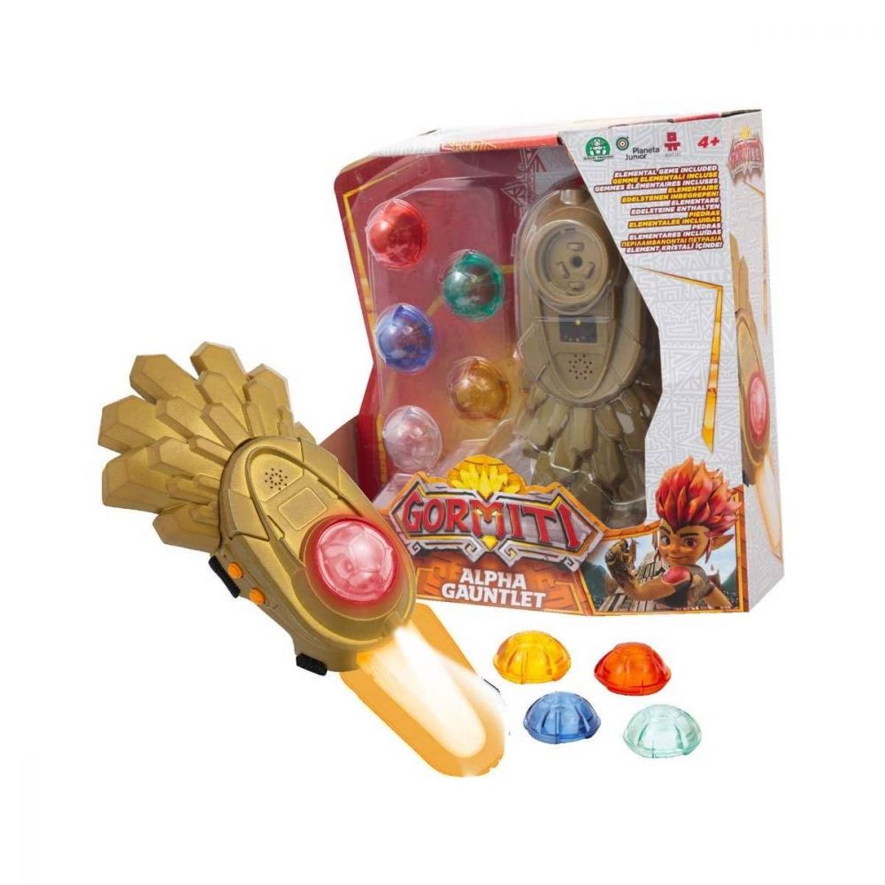 Evoca i potenti Alfa Gormiti col nuovo Guanto Alfa! Basta scegliere una delle 5 pietre elementali e il Guanto evocherà il Gormita! E nasconde anche la Lama Alfa, per essere sempre pronto all’azione.