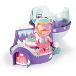 Il set include un Igloo pieghevole, un’esclusiva bambola di cristallo che piange con lacrime vere e sei accessori per giocare sulla neve: uno snowboard, una bottiglia, un ciuccio, occhiali, una sciarpa e guanti. Il set ha una speciale funzione Magic Tears!