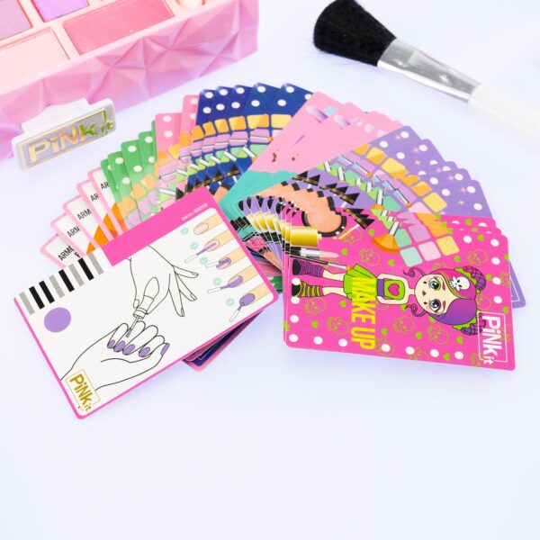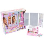 CONTENUTO: specchiera con sensore di prossimità e luci, palette con: Illuminante, 10 ombretti, 3 Blush, 1 rossetto, 4 lucidalabbra in crema, 3 smalti + separadita, 2 stick per colorare capelli, gemme viso, 1 pennello, 2 applicatori lipgloss, pennello piccolo, 3 fermacapelli-stellina, 35 carte interattive multi-lingua, istruzioni dettagliate all’interno.