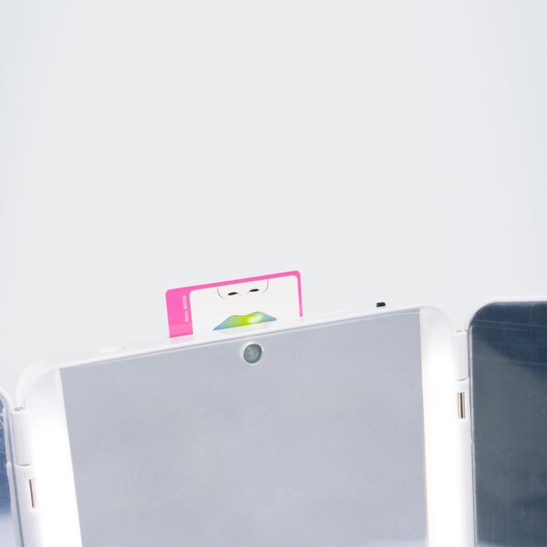 USO: la specchiera ha una batteria interna ricaricabile con un comune caricabatteria e cavo per smartphone di tipo usb-typeC (non incluso nella confezione). Quando inserisci la card nella parte superiore della specchiera la voce ti guida al makeup. Le indicazioni sono disponibili in 5 lingue, per cambiare lingua è presente un pulsante nella parte superiore della specchiera: premerlo in sequenza fino a selezionare la lingua desiderata.