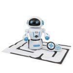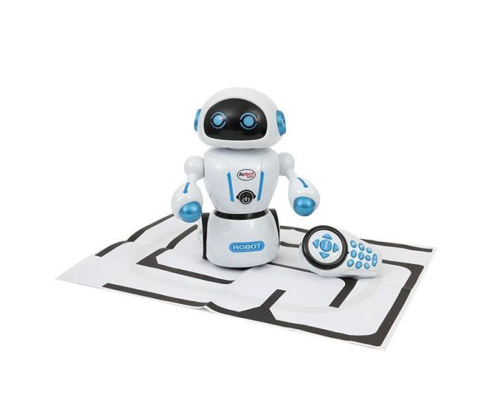 Robot radiocomandato con luci e suoni e azioni programmabili. Segue dei percorsi programmati, balla a tempo di musica e si muove in tutte le direzioni.