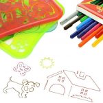 Una nuova serie di sagome realizzate senza spigoli ed in materiale infrangibile, con nuovi profili che permettono un disegno preciso e senza sbavature grazie al bordo rialzato intorno al perimetro esterno. Il cestino segue la forma delle sagome e le contiene comodamente insieme ai pennarelli: il coperchio trasparente, poi, oltre che ulteriore sagoma tutta da disegnare, ha anche la funzione di portapenne sia in orizzontale, da un lato, che in verticale, dall’altro, utilizzando i fori disposti a cerchio. Sviluppa le capacità creative, l’immaginazione, ed è un’utile introduzione al disegno.