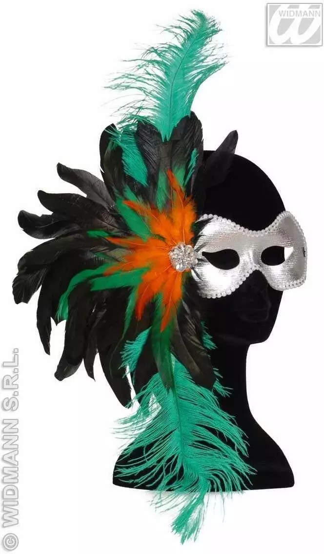 Domino Mascherina con piume laterali -WIDMANN 8003558643707