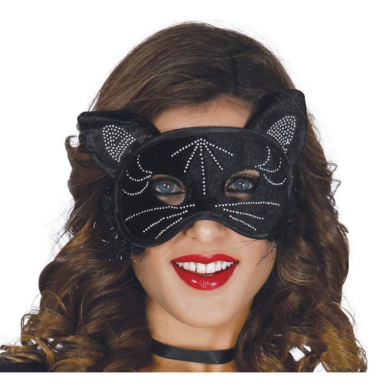 Domino Mascherina in stoffa GATTA NERA CON GLITTER argento – GUIRCA 12717